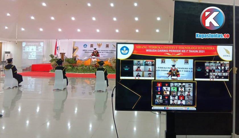 Kupastuntas.co, Lampung Selatan - Sebanyak 221 mahasiswa Institut Teknologi Sumatera (Itera) di wisuda secara dalam jaringan (Daring), Sabtu (19/3/2021), yang diadakan dalam dua sesi, yakni pada sesi pertama pukul 09.00 - 12.00 WIB diikuti 101 mahahasiswa. Sisanya sesi kedua pukul 13.30 - 16.00 WIB.