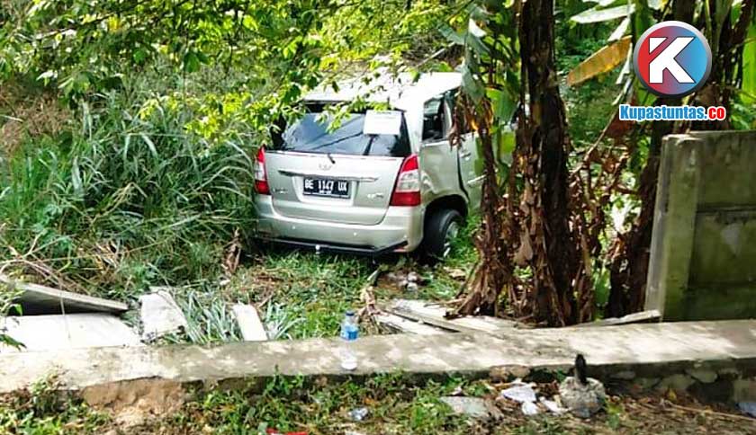 Diduga hilang kendali, Mobil kijang inova BE 1147 UX menabrak dinding pembatas jalan. Foto: Wulan/Kupastuntas.co