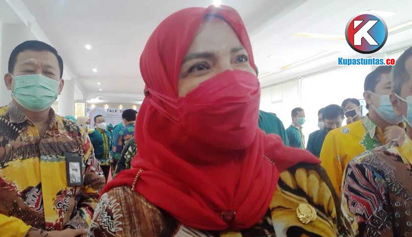 Walikota Bandar Lampung, Eva Dwiana, ketika dimintai keterangan, Kamis (1/4/2021). Foto: Rohmah/Kupastuntas.co