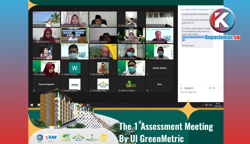 Kupastuntas.co, Bandar Lampung - Tim Pengembang Kampus Berkelanjutan Berwawasan Lingkungan (TPKKBBL) bersama Tim UI GreenMetric melakukan bimbingan assesment UI GreenMatric, yang dilakukan secara Daring pada Rabu (31/03/2020).
