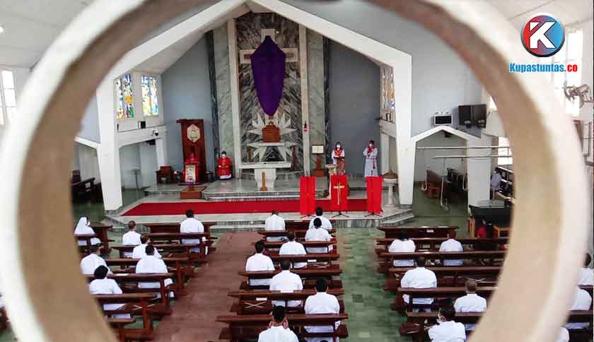 Suasana Pelaksanaan Jumat Agung di Gereja Katedral Tanjung Karang, Jumat (02/04/2021). Foto: Sulaiman/Kupastuntas.co