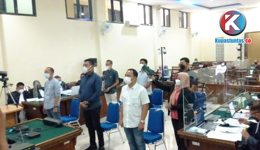 Kupastuntas.co, Bandar Lampung - Sidang lanjutan Fee Proyek Lampung Selatan yang menimpa mantan Kepala Dinas Pekerjaan Umum dan Perumahan Rahyat (PUPR) Lampung Selatan, Hermansyah Hamidi dan mantan kabid Pengairan PUPR Lampung Selatan Syahroni, kembali digelar di Pengadilan Negri Tanjung Karang, Rabu (7/4/2021).