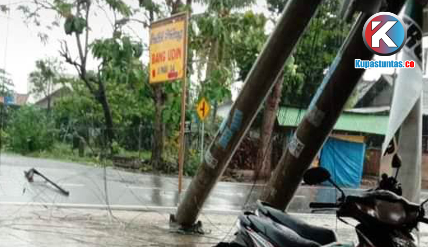 BERITA FOTO : Sejumlah Pohon dan 7 Tiang Listrik Tumbang Akibat Hujan Angin di Metro