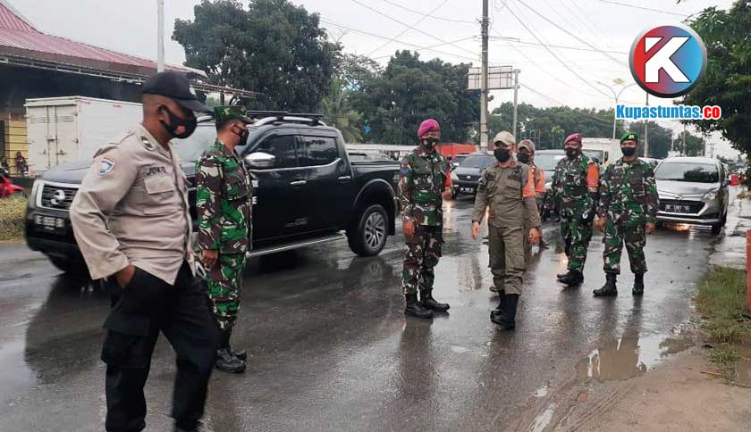 Razia Tim Gugus Tugas Posko Covid-19 Sukarame di pintu masuk Bandar Lampung. Foto: Rohmah/Kupastuntas.co