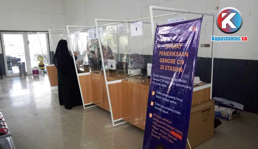 Uji coba penggunaan alat deteksi Covid-19 GeNose C-19 di stasiun Kereta Api. Foto: Siti/Kupastuntas.co
