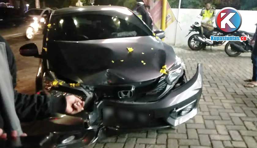 Kupastuntas.co, Bandar Lampung - Diduga hilang kendali, mobil Honda Brio warna hitam dengan nopol BE 1230 TD menabrak pohon dan pembatas jalan di Jalan Teuku Umar, Kedaton, Bandar Lampung, hingga ringsek bagian depan, Minggu (02/05/2021) sekira pukul 19.40 WIB.