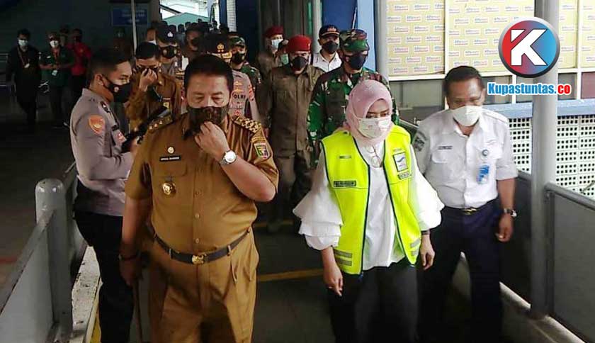 Kupastuntas.co, Lampung Selatan - Forum Komunikasi Pimpinan Daerah (Forkopimda) Lampung tinjau persiapan larangan mudik para perayaan Hari Raya Idul Fitri 1442 Hijriah di Pelabuhan Penyeberangan ASDP Bakauheni, Selasa (04/05/2021).
