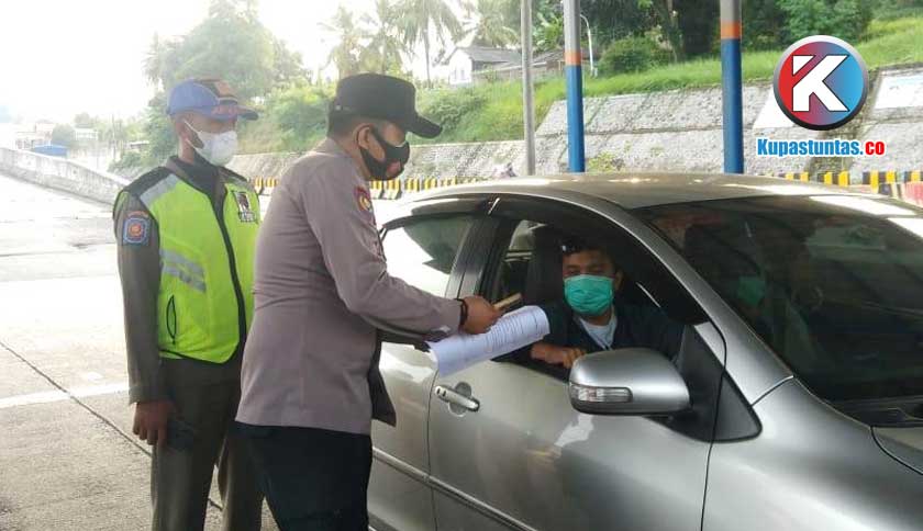 Petugas gabungan Posko Penyekatan Check Point Pelabuhan Bakauheni saat mengecek surat pengguna jalan. Foto: Imanuel/Kupastuntas.co