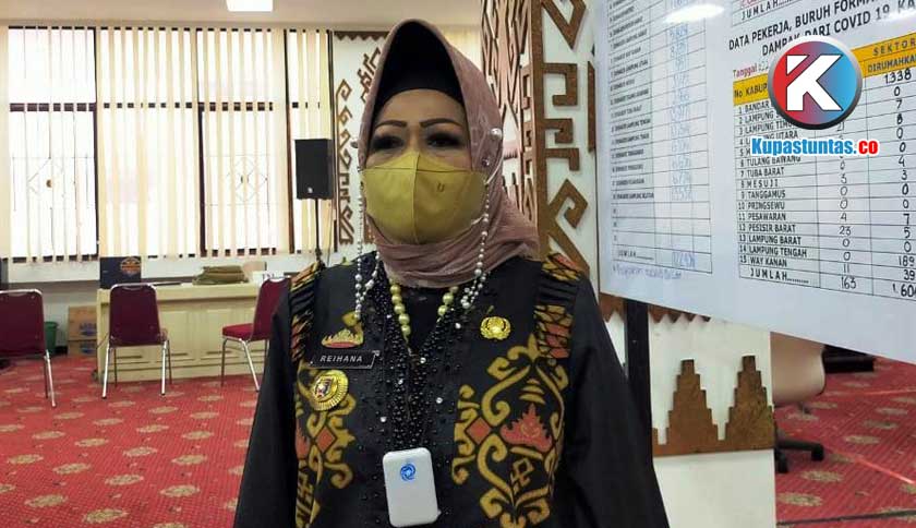 Kepala Dinas Kesehatan Provinsi Lampung, Reihana saat dimintai keterangan, Kamis (6/5/2021). Foto: Ria/Kupastuntas.co