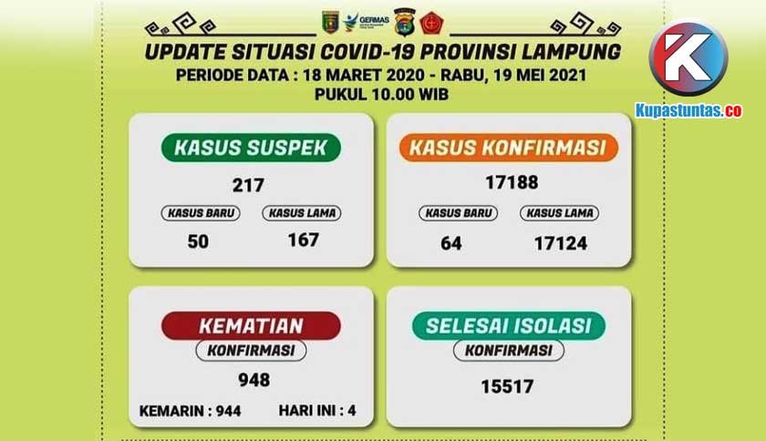 Update Covid-19 Provinsi Lampung, Rabu 19 Mei 2021. Foto: Ria/Kupastuntas.co