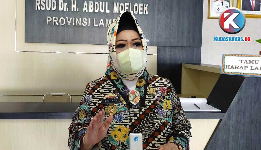 Kepala Dinas Kesehatan Provinsi Lampung, Reihana, saat dimintai keterangan di Rumah Sakit Umum Daerah (RSUD) Abdul Moeloek, Sabtu (22/5/2021). Foto: Ria/Kupastuntas.co