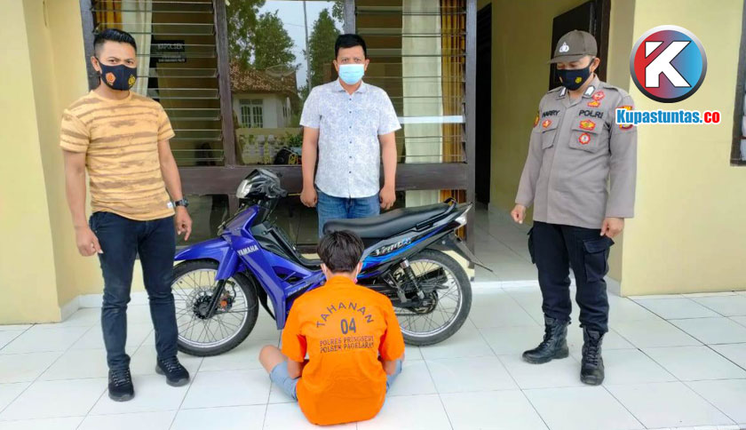 Kupastuntas.co, Pringsewu - Jajaran unit reskrim Polsek pagelaran Polres Pringsewu berhasil meringkus F (19) pelaku pencurian kendaraan bermotor yang beraksi di Pekon Way Ngison, kecamatan Pagelaran, Kabupaten Pringsewu pada 23 April 2021 yang lalu.