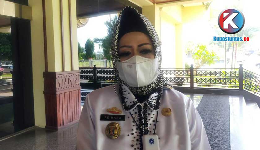 Kepala Dinas Kesehatan Provinsi Lampung, Reihana, saat dimintai keterangan dilingkungan kantor Gubernur Lampung, Rabu (9/6/2021). Foto: Ria/Kupastuntas.co
