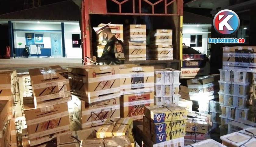 Lampung Selatan, Kupastuntas.co - Satuan Patroli Jalan Raya (Sat PJR) Ditlantas Polda Lampung berhasil mengamankan ribuan ekor burung di Jalan Tol Trans Sumatera KM 39 Gerbang Tol wilayah Sidomulyo, Lampung Selatan, Senin (21/06/2021) sekira pukul 21.30 WIB.