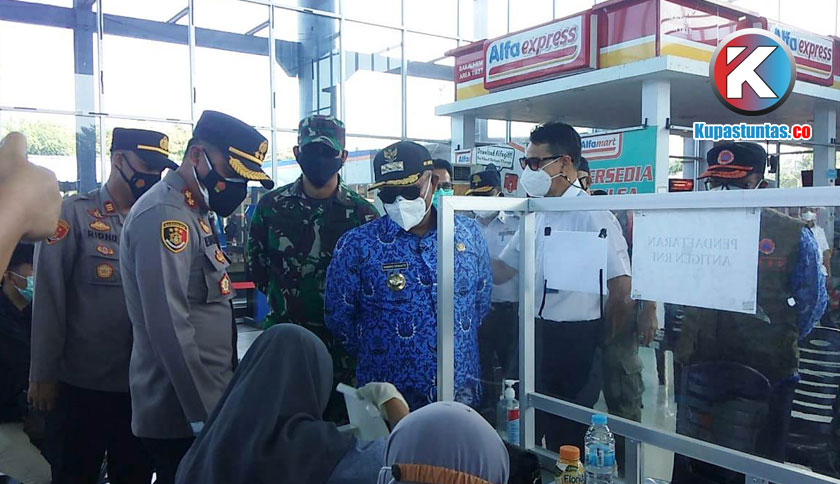 Kupastuntas.co, Lampung Selatan - Bupati Kabupaten Lampung Selatan (Lamsel) Nanang Ermanto tinjau posko penyekatan imbangan Pemberlakuan Pembatasan Kegiatan Masyarakat (PPKM) darurat Pulau Jawa dan Bali di Pelabuhan ASDP Bakauheni, Rabu (7/7/2021).