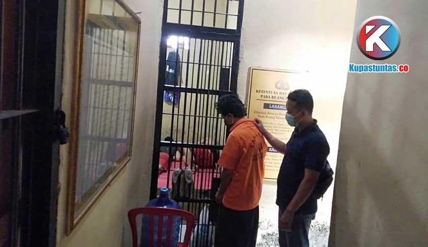 Pelaku saat diamankan pihak kepolisian. Foto: Manalu/Kupastuntas.co