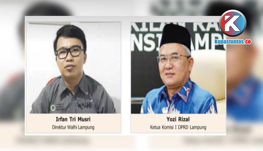 Direktur Wahana Lingkungan Hidup Indonesia (Walhi) Lampung, Irfan Tri Musri , Ketua Komisi I DPRD Provinsi Lampung, Yozi Rizal. Foto: Doc/Kupastuntas.co