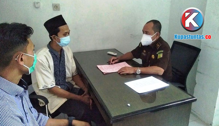 Salah seorang tersangka saat proses pelimpahan ke Kejari Lamsel, Senin (19/07/2021). Foto: Ist.
