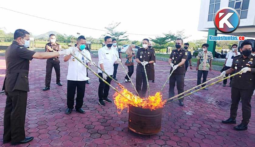 Kupastuntas.co, Pringsewu - Kejaksaan Negeri (Kejari) Pringsewu memusnahkan sejumlah barang bukti (BB) dari perkara tindak pidana yang telah ditangani sejak November 2020 hingga Juli 2021, Rabu (21/7/2021).