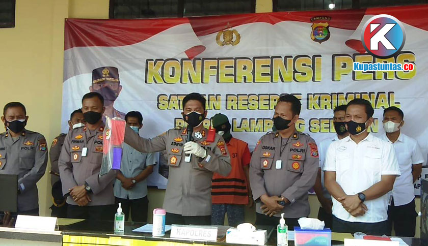Kapolres Lampung Selatan, AKBP Edwin saat konferensi pers, Rabu (28/7/2021). Foto: Imanuel/Kupastuntas.co