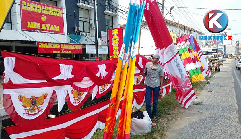 Kupastuntas.co, Pringsewu - Pedagang musimana yang menjual bendera dan umbul-umbul di Pringsewu mulai ramai di jalan protokol menjelang Hari Ulang Tahun (HUT) kemerdekaan Republik Indonesia pada 17 Agustus mendatang.