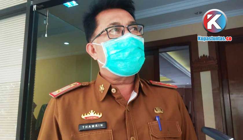 Sekretaris Daerah (Sekda) Lamsel Thamrin saat diwawancarai usai menggelar rapat koordinasi Satgas Percepatan Penanganan Covid-19 Lamsel di aula Pemkab setempat, Senin (23/08/2021). Foto : Imanuel/Kupastuntas.co