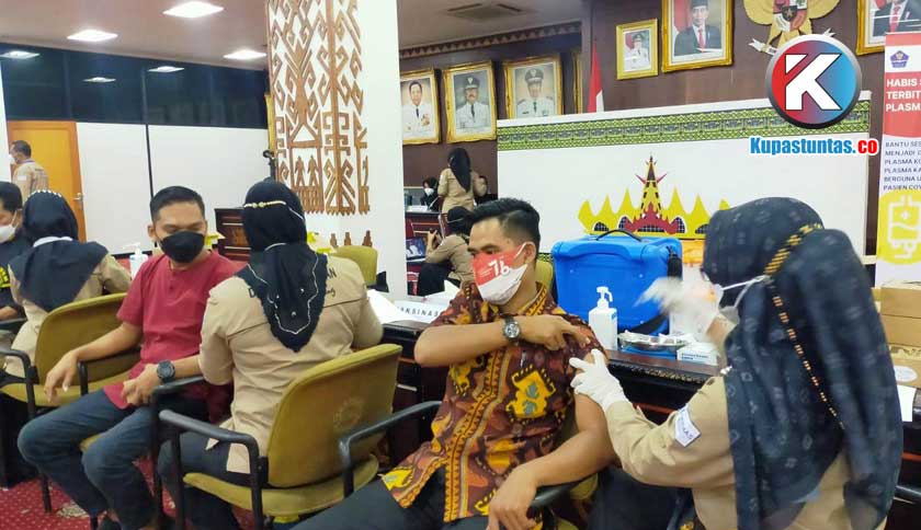 Suasana vaksinasi ASN dilingkungan pemerintah Provinsi Lampung yang berlangsung di Ruang Abung Gedung Balai Keratun. Foto: Ria/Kupastuntas.co