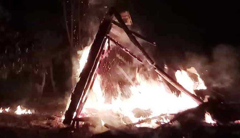 Kupastuntas.co, Lampung Barat - Sebuah gubuk tua tanpa penghuni, di Pekon (Desa) Sukarame, Kecamatan Belalau, Kabupaten Lampung Barat hangus terbakar hingga rata dengan tanah.