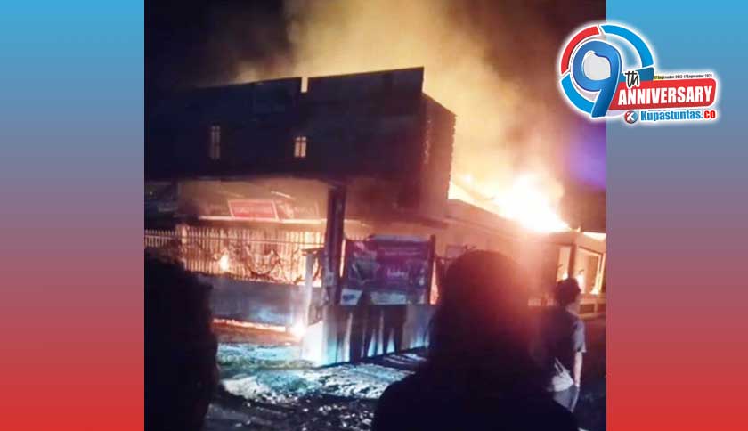Kupastuntas.co, Lampung Selatan - Toko sembako di Desa Jatibaru, Kecamatan Tanjung Bintang, Kabupaten Lampung Selatan (Lamsel) dilalap si jago merah, Rabu (29/09/2021) malam.