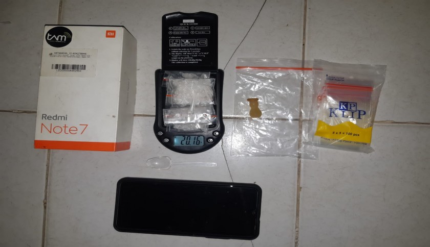 Ia menjelaskan personel berhasil mengamankan 4 buah paket sabu-sabu dengan berat total 20,16 gram, 1 buah timbangan digital, 1 dompet berwarna coklat, 1 pack plastik klip, 1 buah hp android.