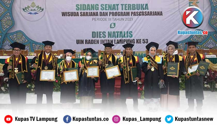 Kupastuntas.co, Bandar Lampung - Universitas Islam Negera (UIN) Raden Intan Lampung melepas 1000 wisudawan secara hybrid, yakni perpaduan antara Daring dan Luring dengan menerapkan protokol kesehatan Covid-19 yang ketat.