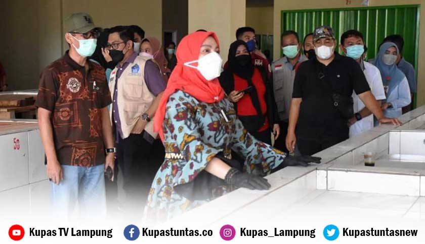 Walikota Bandar Lampung, Eva Dwiana, saat meninjau kios Pasar SMEP, Minggu (20/10/2021). Foto: Rohmah/Kupastuntas.co