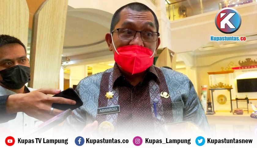 Kepala Dinas Sosial Provinsi Lampung, Aswarodi, saat dimintai keterangan, Kamis (21/10/2021). Foto: Ria/Kupastuntas.co
