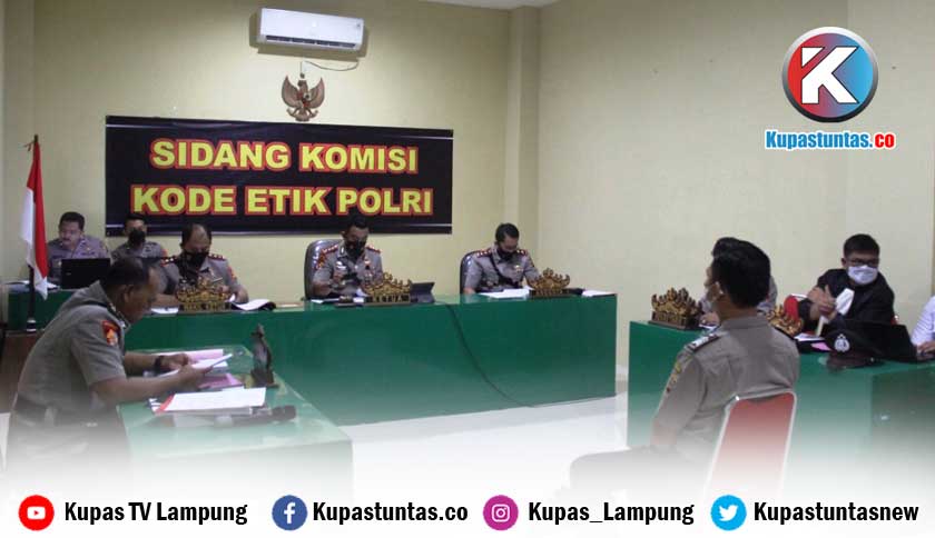 Sidang komisi kode etik kepolisian yang dipimpin oleh Kabid propam Polda Lampung Kombes Pol Syarhan dilaksanakan pada Selasa (26/10). Foto: Yosephin/Kupastuntas.co