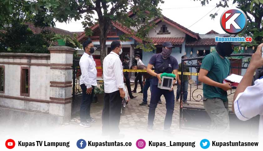 Densus 88 saat mengamankan beberapa barang bukti dari rumah terduga teroris di Pesawaran. Foto: dok