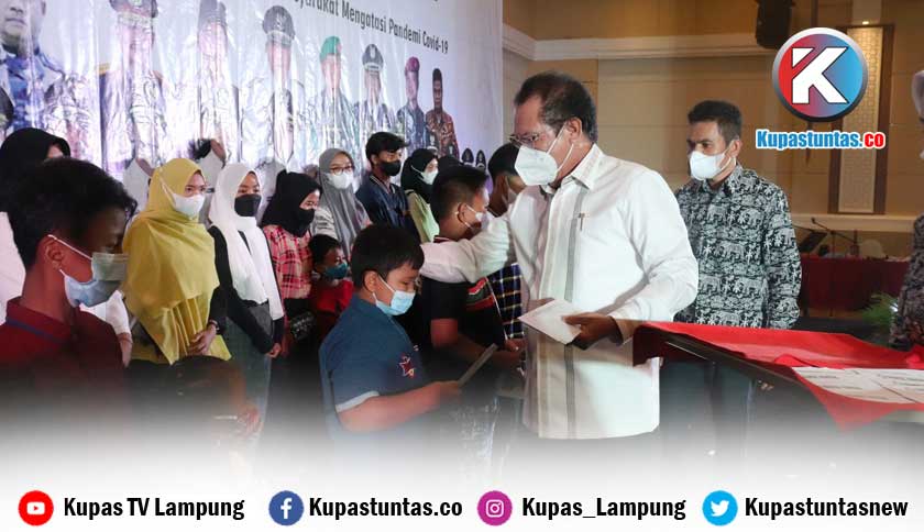 Kupastuntas.co, Bandar Lampung - Anggota DPR-MPR RI, H. Zulkifli Anwar bersama Kupas Tuntas Grup, memberikan tali asih pada sejumlah anak yang orang tuanya meninggal akibat Covid-19, dalam rangka HUT ke-15 Surat Kabar Harian (SKH) Kupas Tuntas.