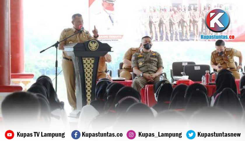 Bupati Lampung Selatan (Lamsel), Nanang Ermanto, saat penerimaan THLS Satpol PP Lamsel pada tahapan Pantukhir di Aula Sebuku rumah dinas bupati setempat, Senin (06/12/2021). Foto: Imanuel/Kupastuntas.co