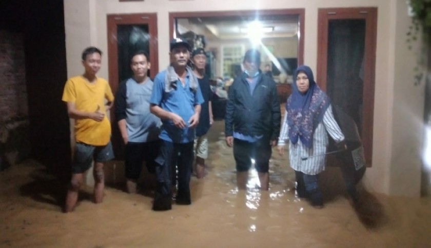 Akibat curah hujan yang tinggi, banjir sudah setinggi lutut orang dewasa dan memasuki rumah warga.