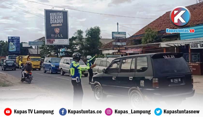 Petugas satlantas Pringsewu saat mengatur lalu lintas kendaraan di jalan A.Yani. Foto : Gamel/Kupastuntas.co