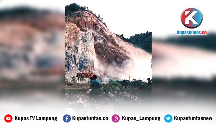 Kupastuntas.co, Pringsewu - Viral beredar video dengan durasi selama 15 detik memperlihatkan salah satu Tambang Batu yang berada di wilayah Kecamatan Gading Rejo, Kabupaten Pringsewu mengalami longsor, Minggu (26/12/2021) sore.