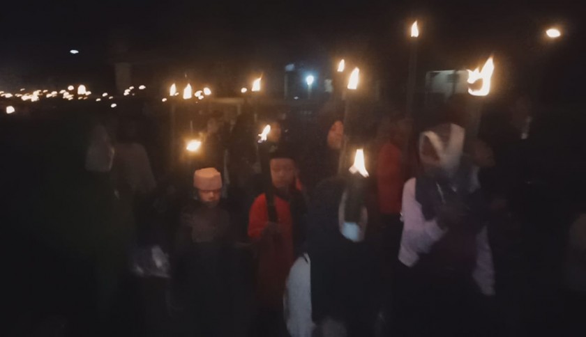"Baru pertama kali mereka adakan pawai obor. Titik awal sampai titik akhir yaitu ke pondok ini kira-kira 2-3 km," terangnya.
