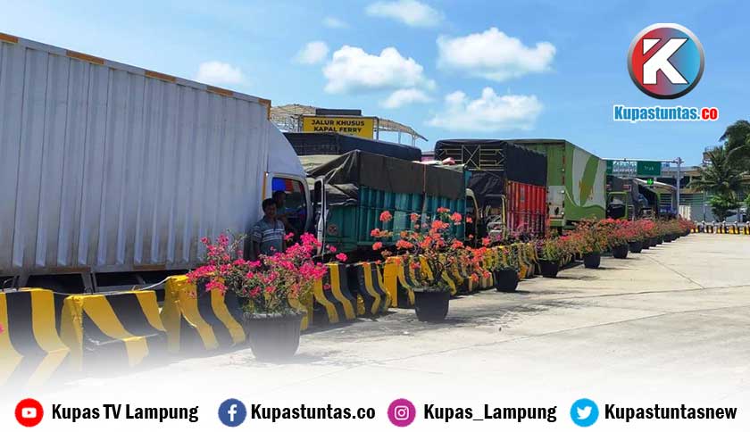 Karena ramainya truk, tampak sempat terjadi beberapa kali antrean kendaraan ketika akan memasuki wilayah pelabuhan Bakauheni.