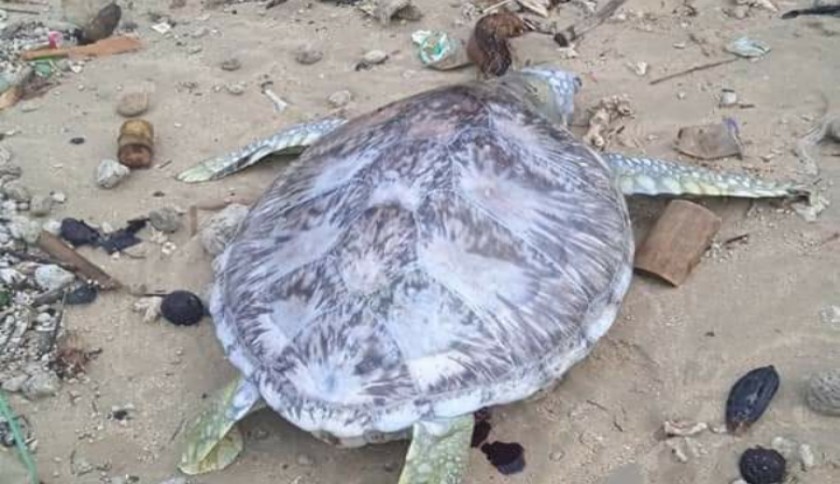 Miris! Seekor Penyu Ditemukan Mati Ditumpukan Sampah di Pantai Minang Rua Lamsel