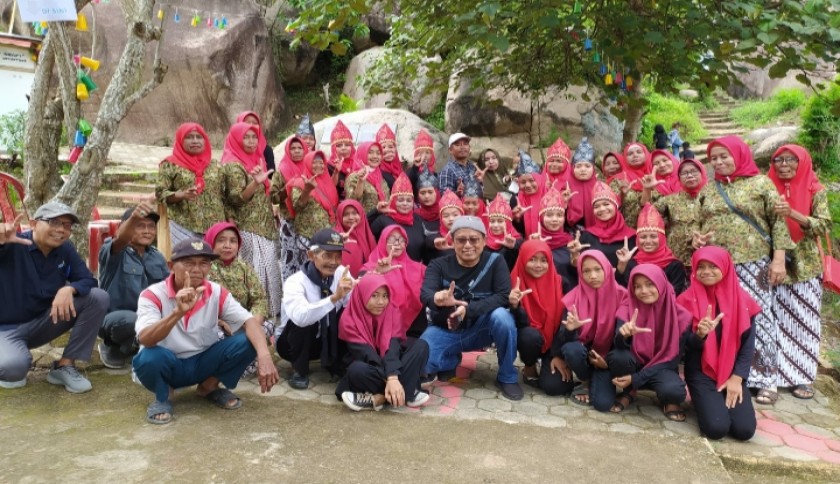 Tim Dinas Pariwisatan dan Kebudayaan Kabupaten Lamsel saat meninjau destinasi wisata Gunung Batu Desa Srikaton Kecamatan Tanjung Bintang