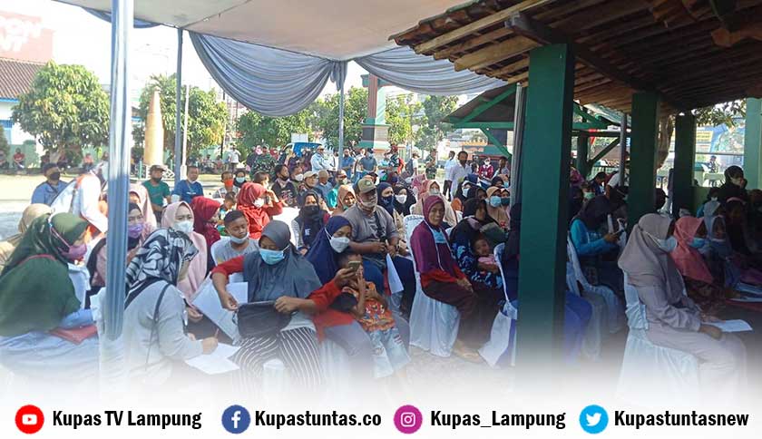 Tampak antrian warga Pringsewu di markas koramil 07 Gadingrejo untuk menerima bantuan BLT Migor. Foto: Gamel/Kupastuntas.co