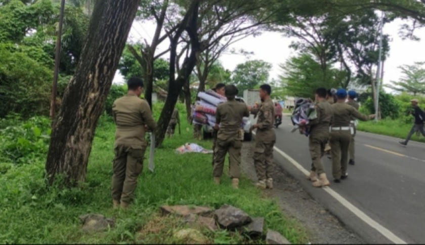 Langgar Perda, Satpol PP Lamsel Tertibkan Spanduk Liar di Jalinsum dan Jalan Protokol