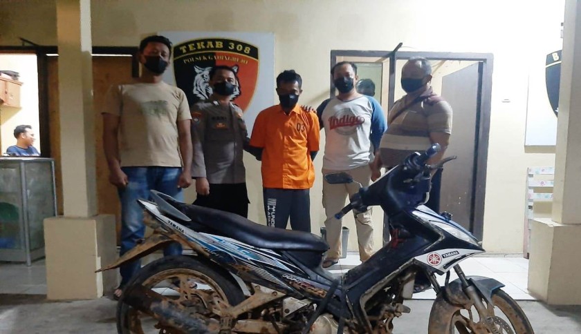 Kini JM beserta sepeda motor miliknya yang digunakan saat melakukan aksi curanmor telah dibawa ke kantor polisi Gadingrejo.