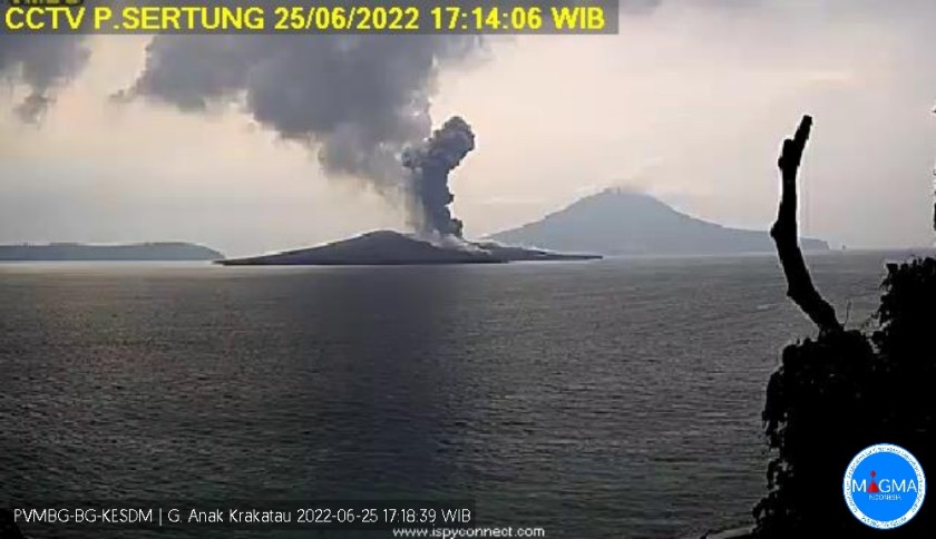 Kupastuntas.co, Lampung Selatan - Gunung Anak Kraktau kembali mengalami erupsi, Sabtu (25/06/2022) sekitar pukul 17.12 WIB.