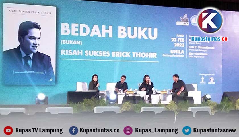 Acara bedah buku (Bukan) Kisah Sukses Erick Thohir di Gedung Serba Guna (GSG) Unila, Selasa (22/02/2023). Foto: Yudha/kupastuntas.co