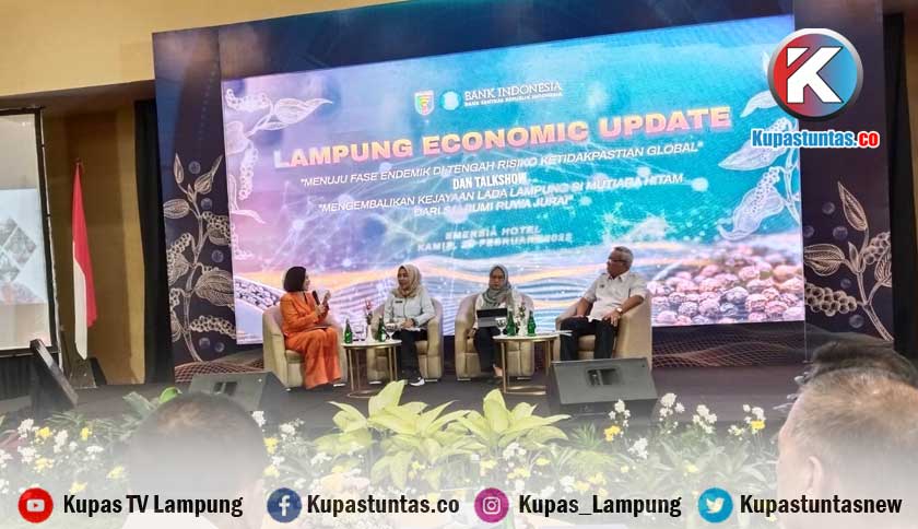 Seminar laporan pemaparan perekonomian Provinsi Lampung triwulan IV dan talkshow strategi mengembalikan kejayaan lada Lampung yang berlangsung di Ballroom hotel Emersia, Kamis (23/2/2023). Foto: Ria/kupastuntas.co.